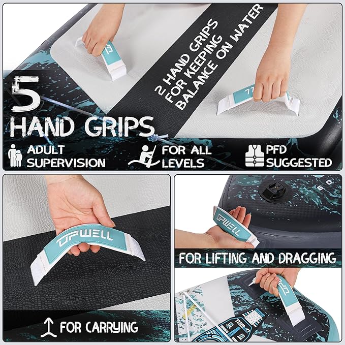 - 【ULTRA PORTABLE 】Our paddle board is designed wider and lighter only 22lbs and it's easy to inflate and deflate quickly. Whether you'd like find a relax water place to enjoy yourself alone, or finding a perfect space to have a fun water experience with your lover or family or friends. UPWELL offer spacious and comfortable backpack that is large enough to accommodate paddle board and all accessories. While you’re having a pleasant holiday, we hope to ease a little tired of your journey.