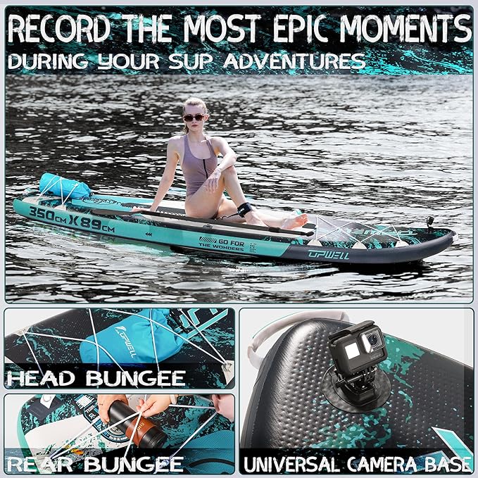 - 【PROFESSIONAL SUP DESIGN】UPWELL inflatable stand up paddle board is 11’6”x 35”x 6”. It's weight capacity up to around 500lbs and 35 inch extra wide design ensures higher stability and flexibility. Our unique design suitable for all beginners and all skill levels to explore and enjoy themselves in different water areas, such as ocean, lake and river, withstand both fresh and salt water. This is an all-around board that can be used for surfing, fishing, touring, yoga and family fun.