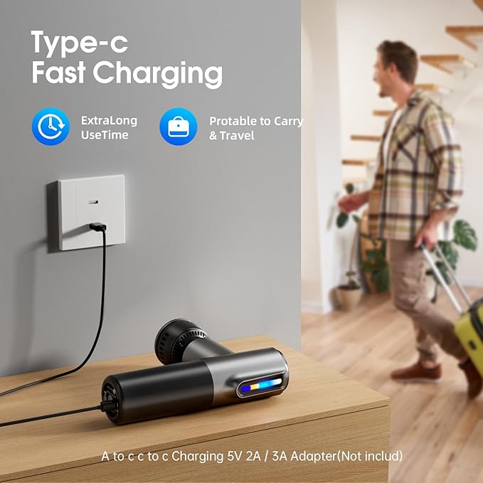 - 【Type C Charging 】:AERLANG masajeador can be charged by A-C or C-C Cable. Fast charging anytime, anywhere for portable use.The massager handheld is equipped with 2400mAh high-quality lithium battery, so it can keep working about lasts for 2-3 hours (varies by speed) after per charge.back massager auto shut-off after 15 minutes of continuous use to protect the motor from overheating.