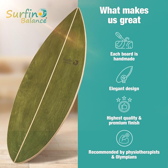 - π οΈ Handmade - We are proud of this! Every balance board from Surfin Balance is made by hand, personally just for you, so each board, with its own grain, is truly unique. That's quality you can trust!