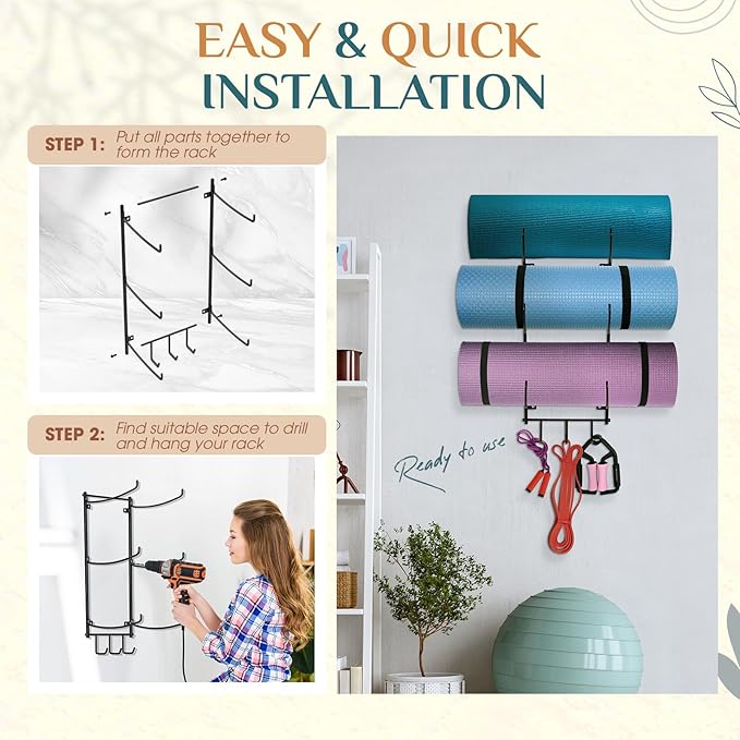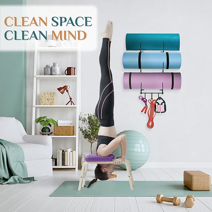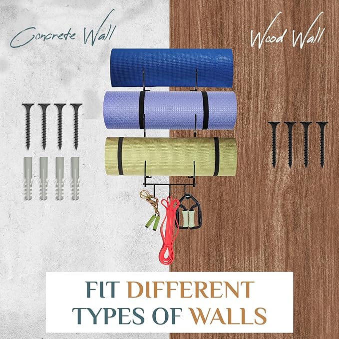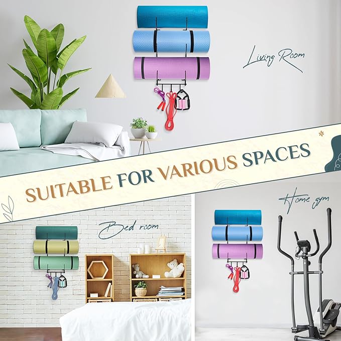 - [Home Gym Accessories] The roller wall rack can store your yoga mat, foam roller, resistance bands. It can also be a decor in home gym. Organizing your home gym in a decorative way and store your favorite yoga mats safely!
