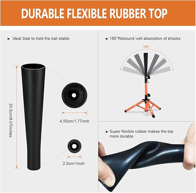 - ππ βΎπ₯πγDURABLE-HIGH QUALITY WRAPPED RUBBERγEvery batting tee's top is hand rolled, strong and durable, which is suitable for kinds of balls, with good elasticity, like baseball, softball, training ball and to have the real hitting feelings with special size design. Built with good quality rubber, the top can holds the balls stablely.