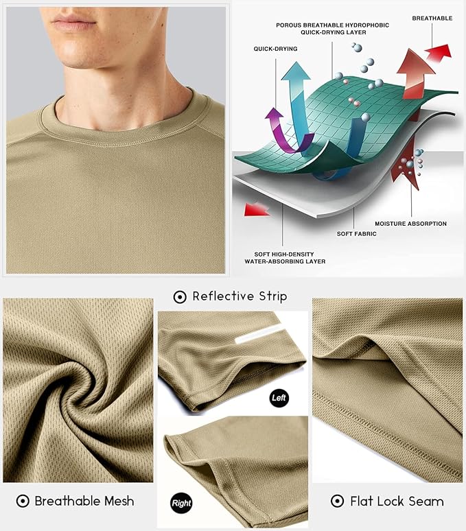 - REFLECTIVE STRIP - The athletic dry fit tshirts shirts for men is designed with reflective strip on the left sleeve to improve visibility in low light conditions. It can make you safer when you are running or cycling at night, and also adds a stylish element to everyday wear.