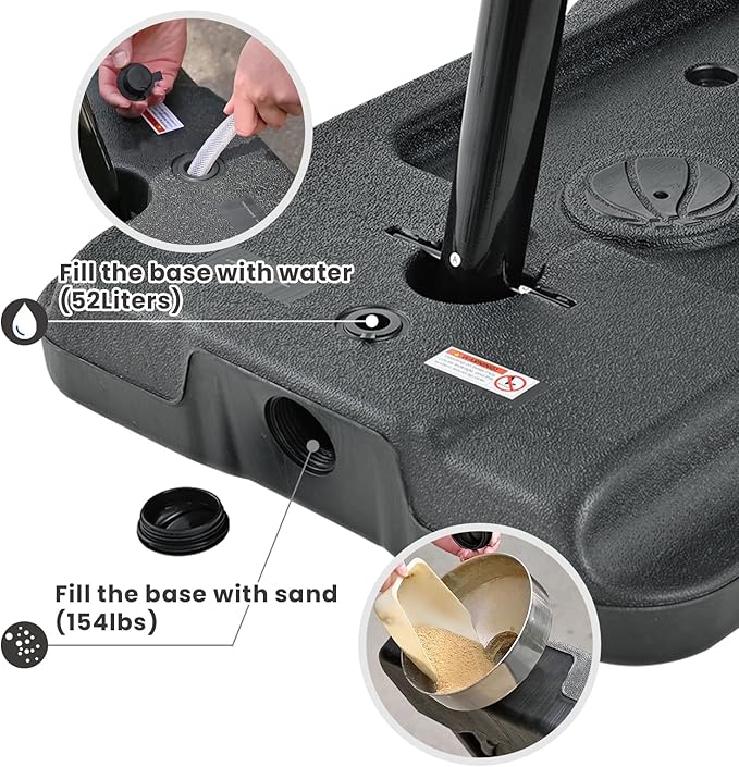 - 【STURDY BASE & PORTABLE】The portable basketball hoop is equipped with a robust and stable base triangular support structure. The high-strength PE base needs filling with water and sand to ensure stability and safety for every shot. The base is built in two wheels making it easy to move by one person. You can place it in backyards, courts, poolsides, gyms, and other indoor and outdoor places