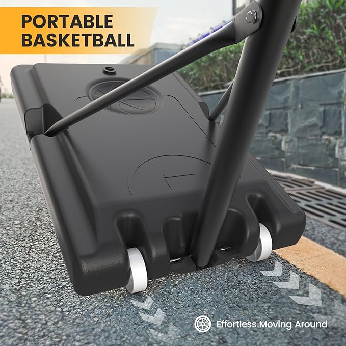 - EASY TO MOVE ANYWHERE: Move and play anywhere with the portable basketball hoop, featuring sturdy wheels for effortless moving. From backyards to driveways or indoor courts, this basketball goal create instant game time fun for all. Exercise and enjoyment combined, perfect for thrilling matches with loved ones