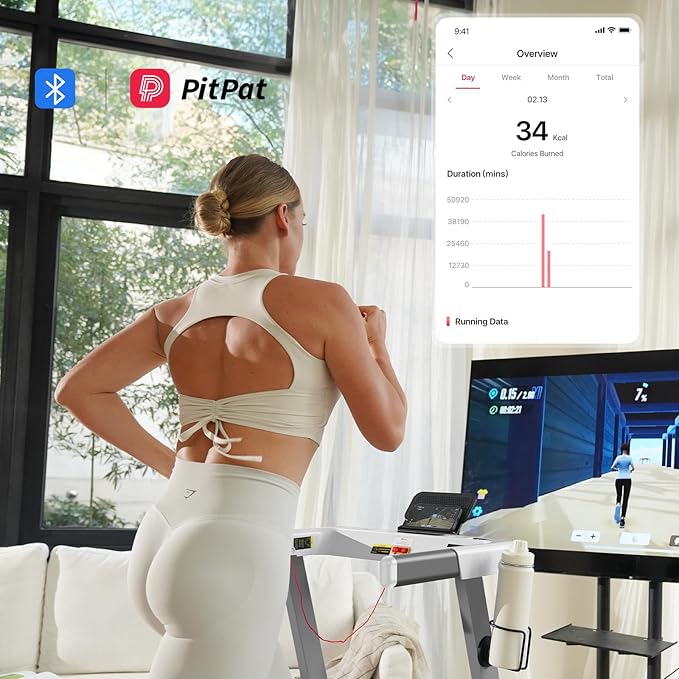 - PitPat APP Control:Enjoy your own sports! We have built a global intelligent sports community platform β PitPat, which provides a wealth of course content, and can record fitness data in the APP to achieve personalized exercise. In addition, through the social function of the APP, you can also participate in various online activities, such as online marathon, running relay, etc., to broaden your social circle. This feature-rich treadmill has completely changed fitness habits