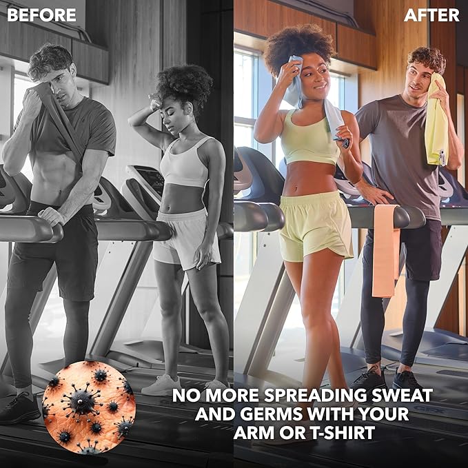 • HIGHLY ABSORBENT - Don’t let sweat disrupt your focus. Our fiber technology absorbs moisture instantly, making it ideal for those high-intensity, sweaty sessions. Just press the towel to your skin and it absorbs all the sweat in no time.