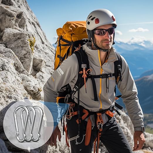 - Safe and Quick: Quick carabiner design is strong and simple, the open-auto-close interlocking tooth spring gate ensures high security and stability, preventing unauthorized opening under load. This compact carabiner clip is one-handed, with smooth opening/closing, ensuring quick response at critical moments.