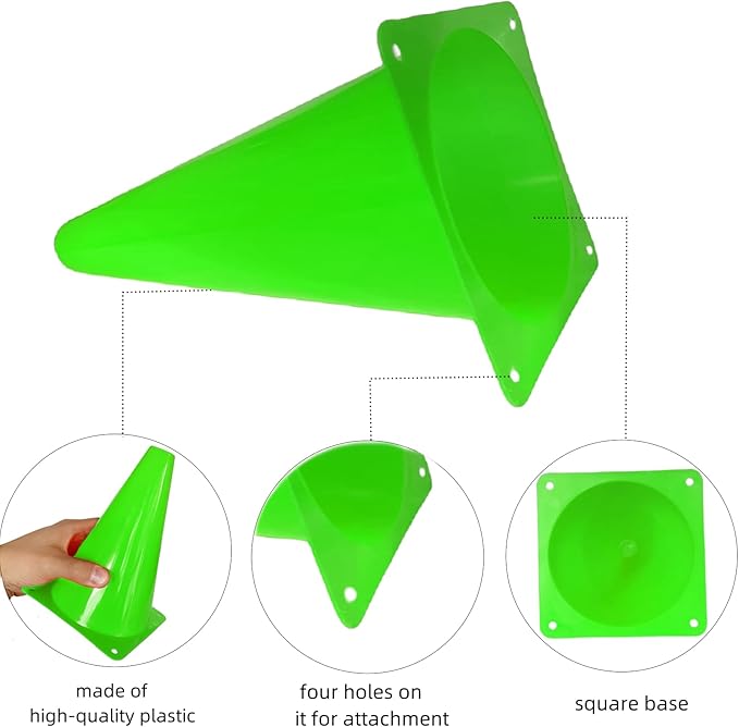 - Versatile: Set of 24 plastic green traffic cones, 7 inches tall, ideal for various sports drills, training exercises, and festive events.
