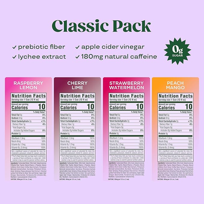 - NATURAL ENERGY: Made with zero sugar and 180mg of natural caffeine from green coffee bean extract, each 10-calorie can of Bloom Sparkling Energy delivers the steady energy kick you crave β minus the crash.