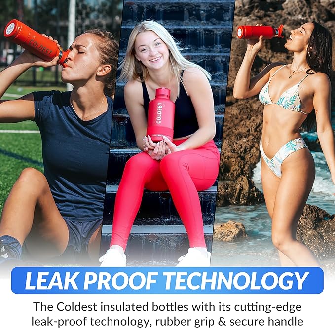 - 𝐀 𝐋𝐄𝐀𝐊-𝐏𝐑𝐎𝐎𝐅 𝐄𝐗𝐏𝐄𝐑𝐈𝐄𝐍𝐂𝐄: Is your water bottle flask creating a wet mess? The Coldest 18/8 Stainless Steel Water Bottle boasts a 100% leak-proof design, ensuring not a drop escapes. Thanks to the wide mouth lid, it provides convenience without compromising on leakage protection. The true double-wall stainless steel construction guarantees a water tight seal, allowing you to confidently embrace a mess-free hydration experience with Coldest Steel Water Bottles.