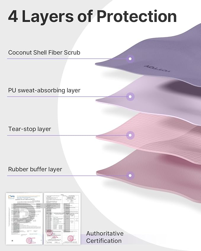 - 3.Four-Layer Optimized Structure: This mat features a four-layer design for optimal performance. The first layer is coconut fiber for enhanced anti-slip effect, the second layer offers tear resistance, the third provides high-rebound cushioning, and the fourth layer is rubber for superior ground grip, ensuring stability during every pose.