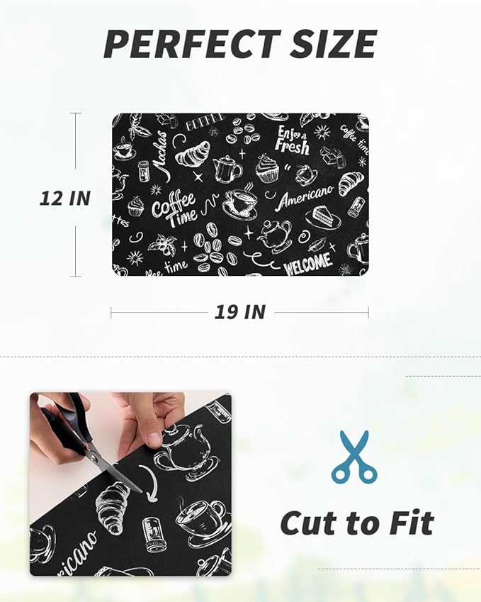 - EASY CLEAN & Quick DRY: No need to clean frequently because hide stains well. Up to 90% porosity material enable the coffee bar mat air dry quickly without machine