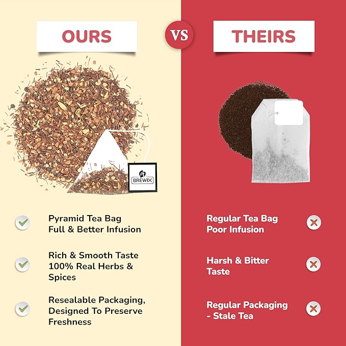 BREWIX, Rooibos Chai Tea Bags (25 Pyramid Tea Bags) Caffeine-Free, Herbal Tea, South African Red Tea | Rooibos, Cardamom, Cinnamon, Black Pepper, Nutmeg, Ginger & Clove
