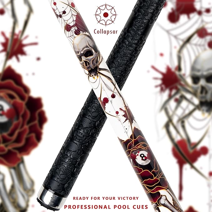 • COLLAPSAR 58" Original Skull Series Pool Cue Stick Come with a 1X1 Cue Case and joint protectors,Available in 19 - 21 ounce .