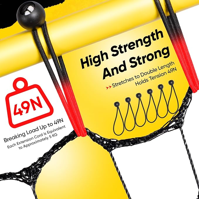 - SUPERIOR DURABILITY FOR MAXIMUM PERFORMANCE - Our volleyball training net system with durable 45ply HPDE polyester net, providing unparalleled strength and long-lasting. Thickened 1.2mm Anti-Rust coated powder steel providing reliable training tool that lasts (others 0.8mm). 30 imported bungee cords ensure even tension to deliver tournament-level rebound accuracy, making our volleyball practice net equipment is the perfect training partner for all session