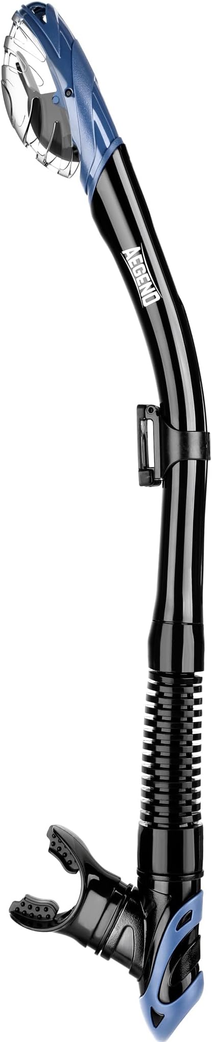 - Advanced top dry valve and splash guard: Aegend Dry snorkel profiled βpaddleβ dry top automatically closes when submerged, not allowing water entry. Even waves crash overhead, the splash-guard will prevent water from coming into the snorkel. Unlike the float ball valve which gets lodged easily by small sands or kinds of stuff, our new design valve won't be stuck, which give you comfortably breath.