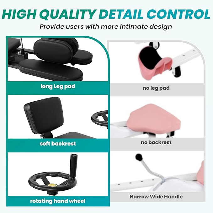 - 【Enhanced Comfort】: Ergonomically designed for maximum comfort during use, featuring padded cushions and adjustable settings to ensure a personalized and pain-free stretch. Sit in comfort, modify the extension arm using the wheel, and discover your ideal position for a profound and efficient stretch with the Leg Stretcher. This split machine is engineered to target your inner thighs, glutes, pelvic floor muscles, and lower back muscles, offering an effective full-body stretch.