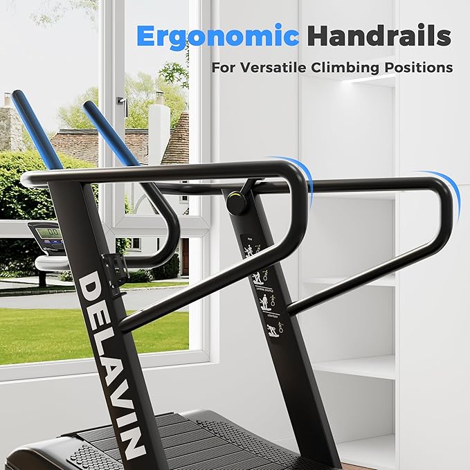 DELAVIN Curved Manual Treadmill, Non Electric Treadmill with 4 Resistance Levels, Motorless Treadmill with Front Digital Display and Handlebar, Wide Belt Treadmill 440LBS Capacity for Home Gym(FBA)