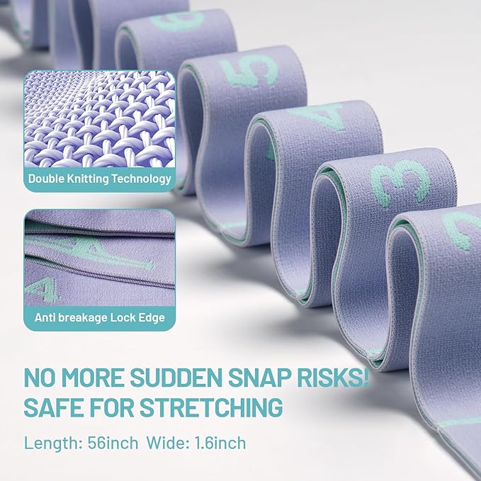 - Premium Design: Yoga stretch strap is made of high quality polyester cotton, soft, skin-friendly, no odor. Double precision stitching ensures durability, it has 11 individually numbered stretch loops with stretching pose guides for personalized stretching