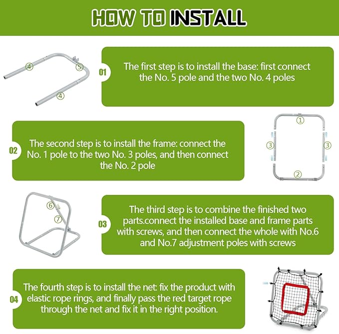 - Complete Training Set: you will receive a 1.67' x 1.67' baseball rebounder, a carrying strap, a storage bag, and 4 ground stakes; With its easy instructions inside, setting up the net for a training session, or disassembling it after, becomes as easy and effortless as ever