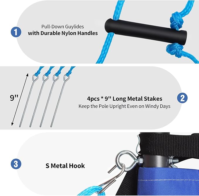 - 𝐀𝐯𝐨𝐢𝐝-𝐒𝐚𝐠𝐠𝐢𝐧𝐠 𝐃𝐞𝐬𝐢𝐠𝐧: Badminton Volleyball set for beach is equipped with UPGRADED adjustable STRAPS & BUCKLES to easily keep the net remains straight, No more droopy net. No mechanical failure like the winch system of other products.