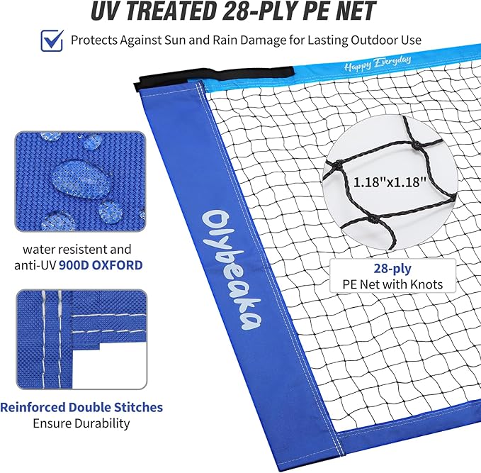 - 𝟒 𝐀𝐝𝐣𝐮𝐬𝐭𝐚𝐛𝐥𝐞 𝐇𝐞𝐢𝐠𝐡𝐭: 3 Volleyball heights can be adjusted through EYE BOLE SYSTEM: official 8’ for men, 7’8” for coed and 7’4” for women; Official Badminton Height 5'1" can be achieved by removing the middle Pipe. Olybeaka Badminton Volleyball set can be set up within minutes thanks to the push-button locking system.