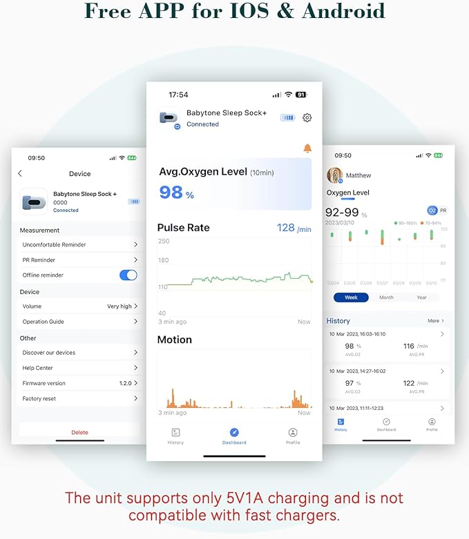 - 【Peace of mind】 Viewing the heart rate and movement on ViHealth APP, keep an eye on your baby's sleep.