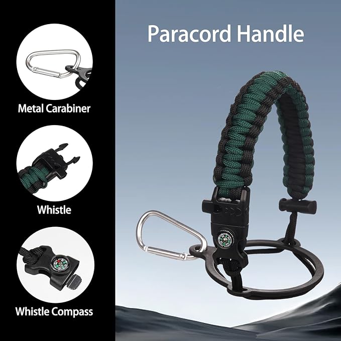 - Suitable for all occasions: This insulated water bottle comes with a beautiful hand-woven nylon paracord, and the paracord handle is equipped with a compass and carabiner and a whistle. It is a fully functional essential water bottle for camping, climbing, hiking, home use, travel, cycling, swimming fitness, and commuting