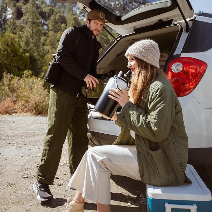 Insulated Water Bottle 64oz,Triple Wall Vacuum Stainless Steel(Dishwasher Safe),Leak Proof & Non-BPA,Flask Jug with Paracord Handle & Straw Spout Lids Sports