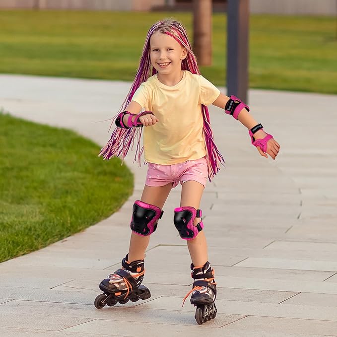 - Ventilated Fabrics - BOSONER kids knee pads and elbow pads set are made of high grade durable fabrics, with EVA foam padding and polycarbonate full-coverage caps, which has good shock absorption and cushioning effect to reduce the damage caused by sports fall