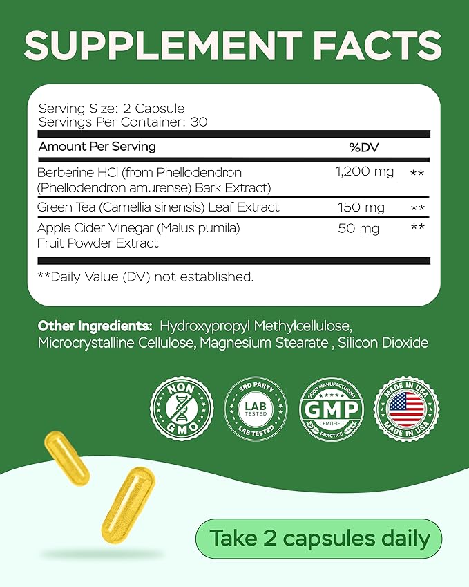 - Special Ingredients : Apple Cider Vinegar, Berberine, Green Tea Extract