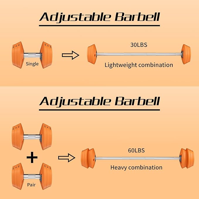 - 🥇【3 in 1 Multifunctional Dumbbell Set】Skok 4-in-1 dumbbell set easily transforms into dumbbells, barbells, kettlebells and weightplate , allowing you to perform a wide range of exercises such as bench presses, squats, and more, tailored to your fitness needs. Perfect for home gyms, minimizing clutter while providing multiple workout options, making it ideal for beginners and experienced athletes alike.