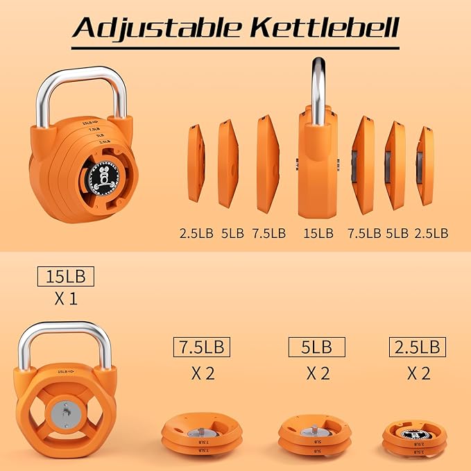 - 🥇【More Weight Options】Each dumbbell plate is detachable, enabling users to configure their weights according to individual preferences and fitness levels. Choose from a weight range of 5lb, 15lb, and 30lb for dumbbell and barbell exercises, while adjustable kettlebell workouts can be adjusted to 15lb, 30lb, 40lb, and 45lb, providing options for everyone from beginners to advanced athletes.