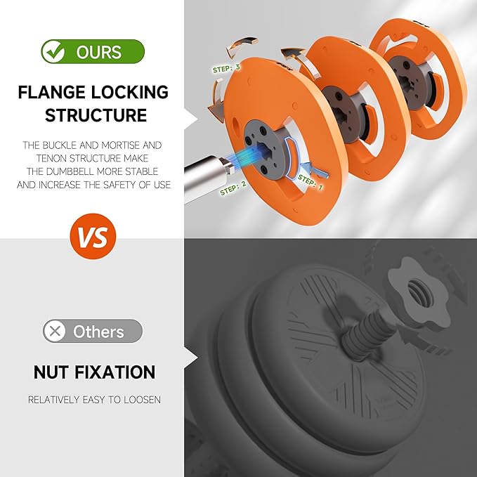 - 🥇【Stable Locking Structure】: Featuring a flange disk lock system, our adjustable dumbbell ensures a secure and stable workout experience, eliminating the risk of weight plates falling off during use.