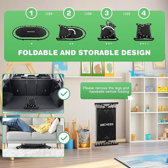 ANCHEER 56" Double Mini Trampoline for Kids, Mini Rebounder with 5-Level Adjustable Handle, Parent-Child Trampoline for Kids, Max Load 220lbs, Fun for Indoor/Outdoor