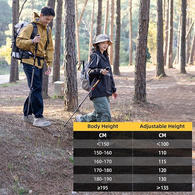 - 【Long-lasting construction】Crafted from grade aluminum, the folding walking stick is robust and provides unparalleled stability and support for your outdoor activities. Perfect for both male and female hikers seeking reliable collapsible poles.