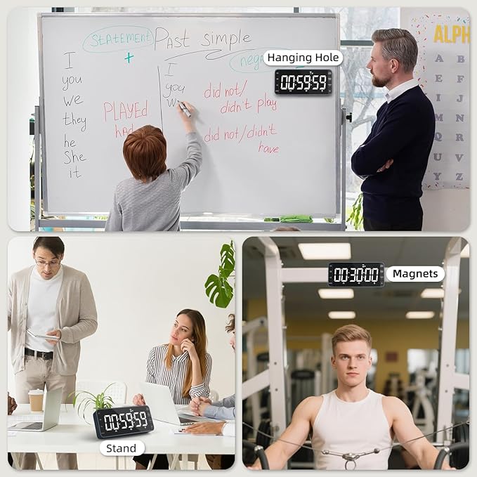 - 【Large Clock With Seconds】When not in timer mode, it doubles as a clock—with seconds display for precise timekeeping, ensuring you track time accurately. Switch between 12/24H formats to match your preference. The clock stays on even when unplugged, so you can check the time anytime