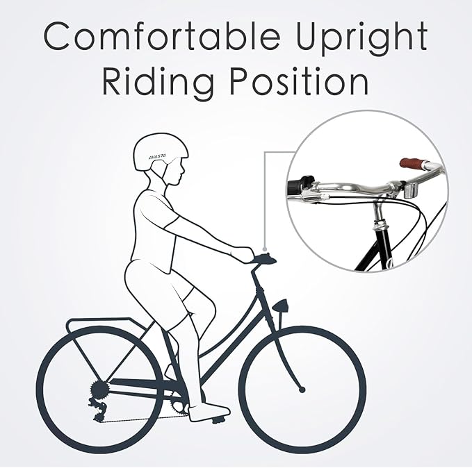 - 🚴♀️【Women-Centric Ergonomic Design】Crafted for female proportions: A low-step high-carbon steel frame enables easy mounting, while the swept-back handlebars promote upright posture (reducing back strain). The brown synthetic leather saddle with shock-absorbing springs combines vintage aesthetics with modern comfort.