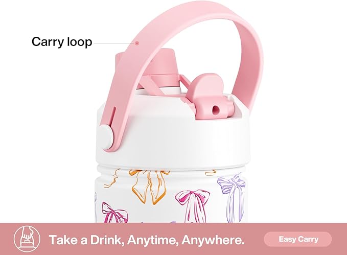 26 oz Insulated Water Bottle with 2-in-1 Straw and Spout Lid, Keep Cold 24H, Leak-Proof, Fits in Car Cup Holder, Stainless Steel Water Bottle for Sports, Travel, and School (Ribbon Whimsy)