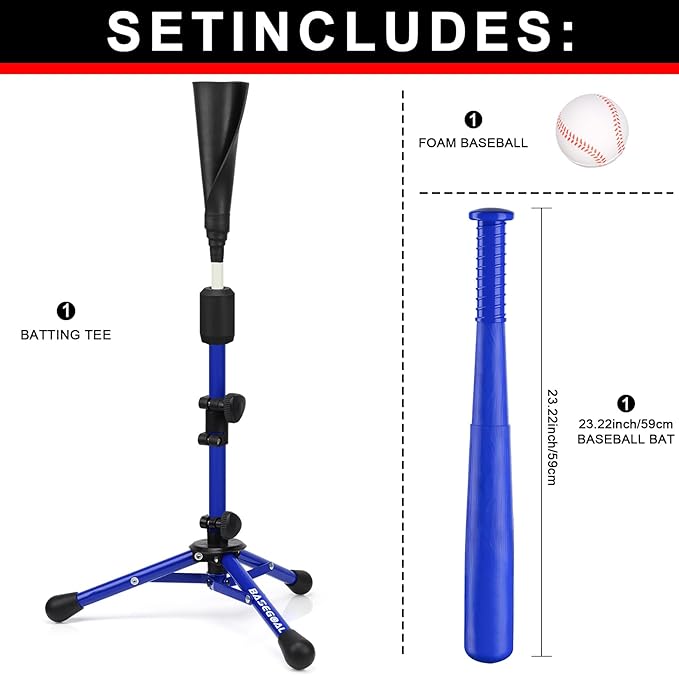 - 1.【STURDY TRIPOD STAND】batting tee for kids, Sturdy tripod configuration provides stability.