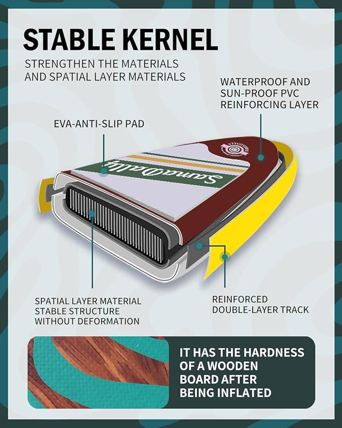 - Spacious & Enjoyable: SamaDally Candy Star series inflatable stand-up paddle boards are 1 to 2 inches wider than other similar products. 34in paddle surface is extremely spacious. Both beginners and paddleboards enthusiasts can find their own water - based fun on this SUP and enjoy a relaxing time.