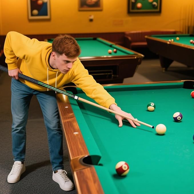 - Multiple Usage Scenarios: The cue stick is wear-resistant and durable, and there are 4 colors (blue, red, yellow, and green) to choose from. It is very suitable for bars/billiard halls/home use, and the pool cue set can meet your different needs.