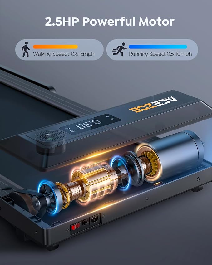 - 【No Assembly, Easy Storage】Designed for small spaces, compact treadmill comes fully assembled and features built-in transport wheels for easy movement. You can store it under a bed, sofa, or in a corner when not in use. Perfect for home or office fitness! Acezoe offers 24/7 service, 2-year protection and lifetime technical support. Any problem please contact our after-sale email.