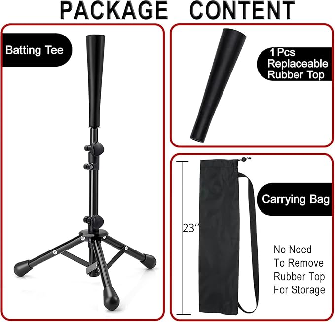 - 【Baseball Softball Tee Kit】Our baseball training tee set includes a 1set x black tripod Tee, 1 x flexible rubber and 1 x carry bag. softball hitting tee is available in black and red for you to choose.
