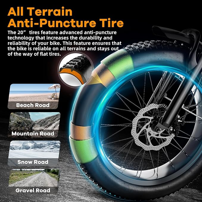1000W Folding Electric Bike, 48V 20AH Large Removable Battery E Bike, 30+MPH, 80 Miles Max Range, 20" Fat Tire Electric Bike for Adults, Adult Electric Bicycles for Commute Beach Snow