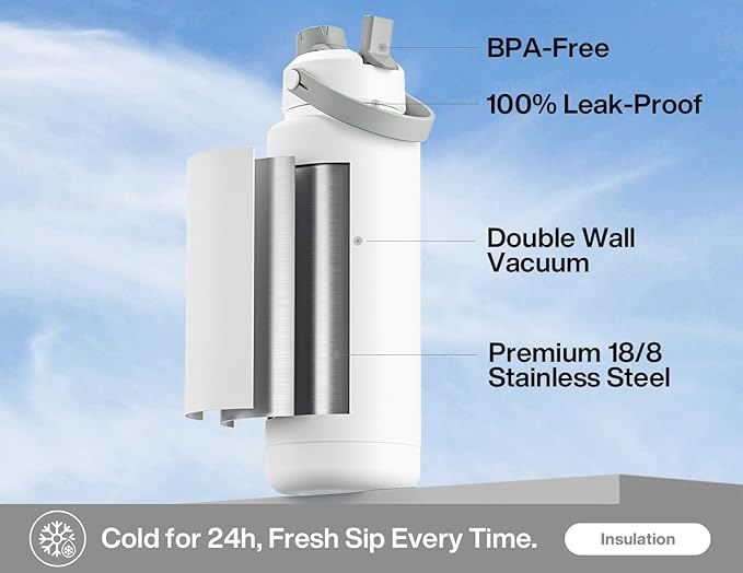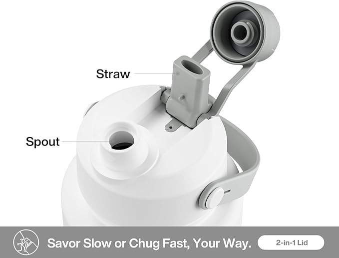 - 2-in-1 Leakproof Lid: Features a straw for easy sipping and a spout for effortless pouring or chugging; Toss it in your bag or car, offering no spills and endless thrills