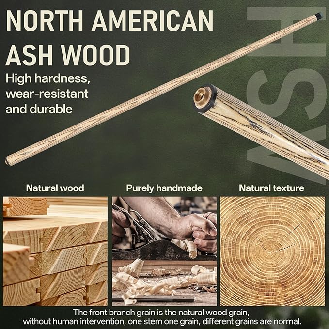 - Material: The forelimb of the pool cue is made of high-quality North American ash wood, which has been treated with black technology, making it harder than ordinary wood, straighter and less likely to bend