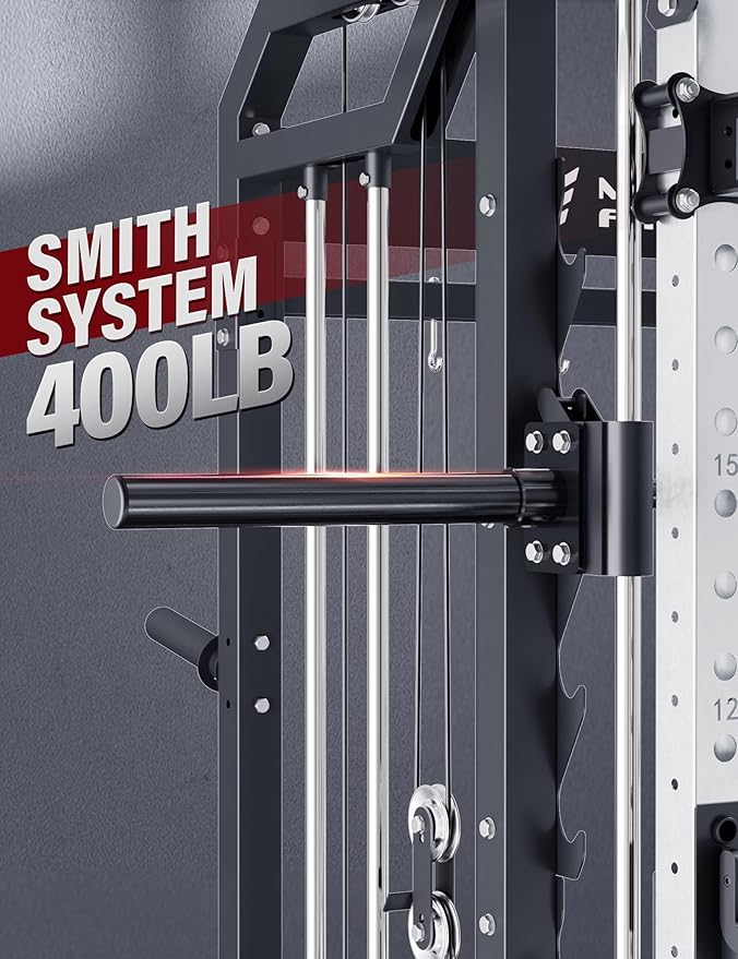 Major Fitness Drone2 Advanced Training Smith Machines– All-in-One Home Gym Squat Rack with Aluminum Pulley Set , Weight Bar, Dual LAT Pull-Down Systems & Cable Crossover Machine for Full-Body Workouts