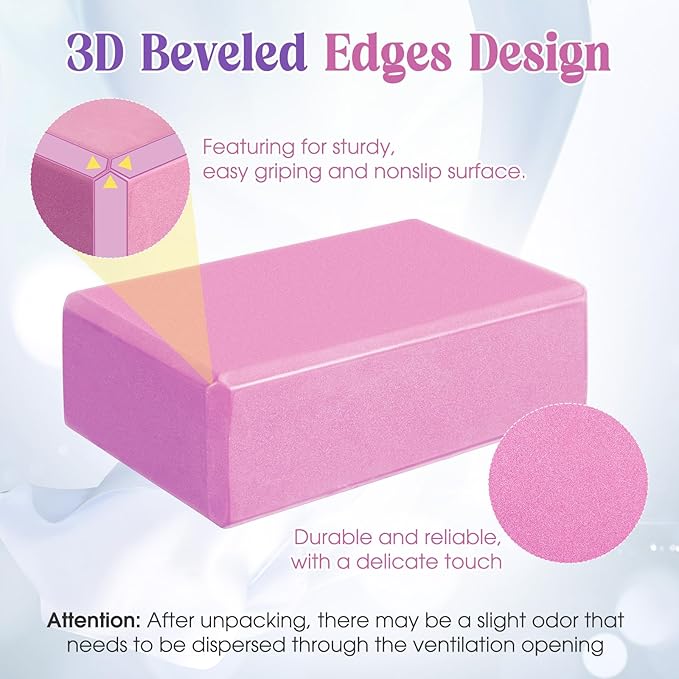 - Comfortable Support: each yoga block measures about 9 Γ 6 Γ 3 inches, weighs 0.27 lb, and is made of durable foam, feels fine and dense, has a non slip surface for easy grip, providing the softness, stability and balance you need in your practice to support and modify poses to suit your flexibility level